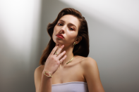 The earrings Rosa Tudor Studs Large are delicate earrings with a modern, fluid shape. These earrings can be easily combined with other jewelry due to their fineness. The size of the earrings is 16 mm. We recommend to combine it with other jewelry from the "Tudor" Roses collection.