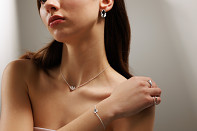 The necklace Rosa Tudor Zircon Necklace is a delicate jewel of a modern, fluid shape with a zircon. This necklace can be easily combined with other jewelry due to their fineness. The size of the pendant is 12 mm. We recommend to combine it with other jewelry from the "Tudor" Roses collection.