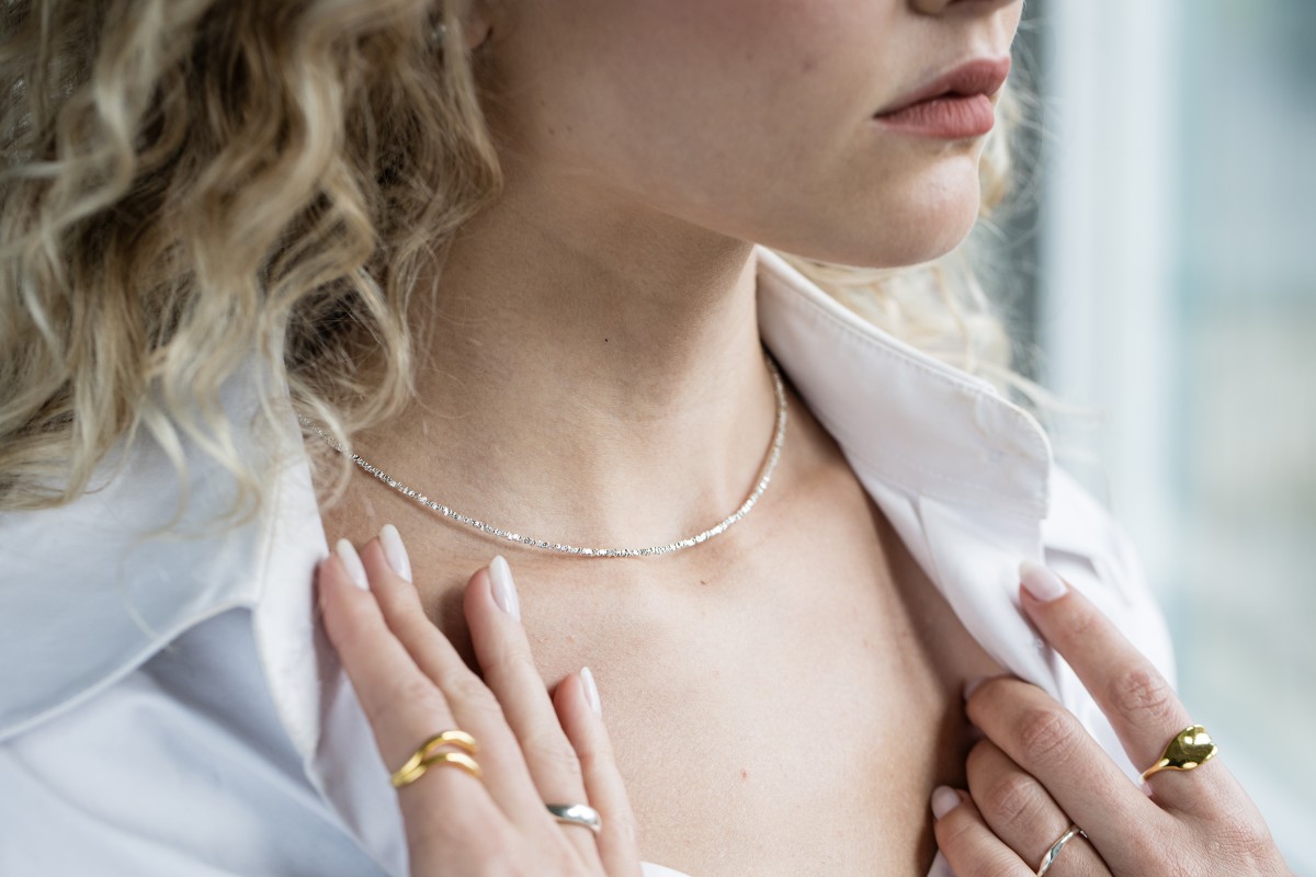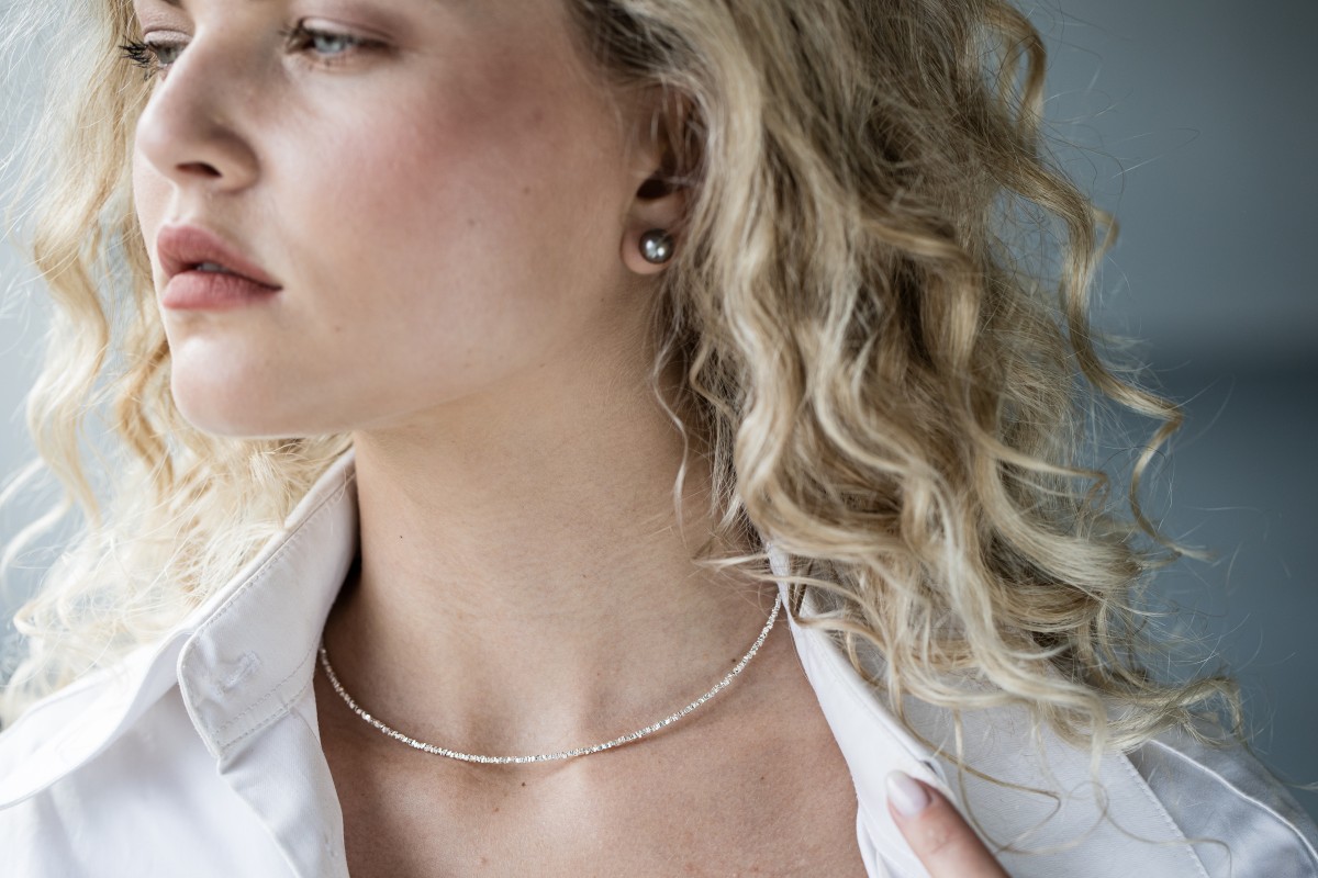 This necklace is made of fine sterling silver particles. The necklace is made in the Czech Republic.