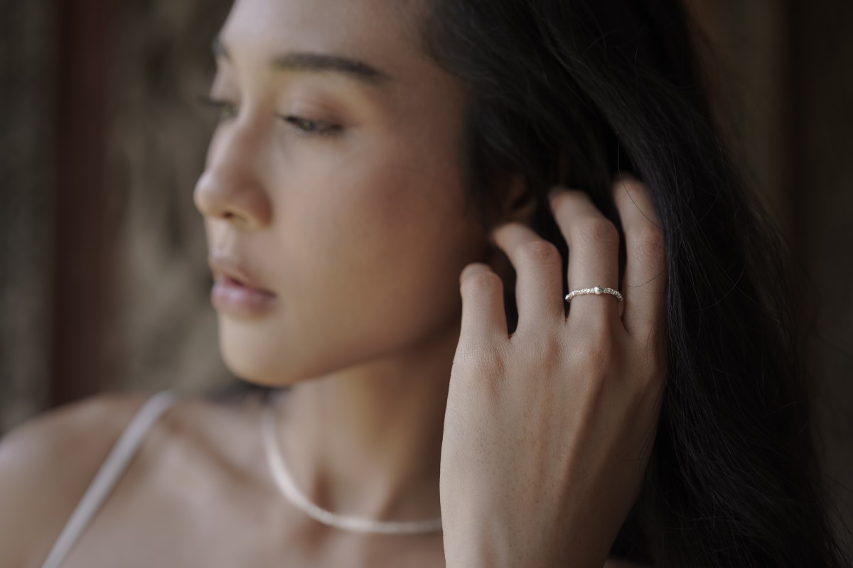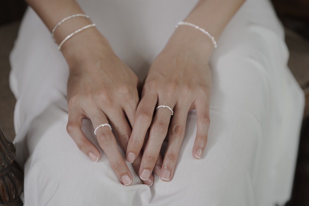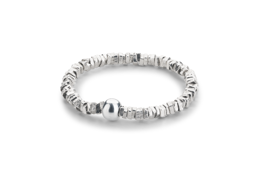 Tento prsten je vyroben z jemných částic sterlingového stříbra, které jsou navlečeny na gumičce. Prsten je vyráběn v České republice.
